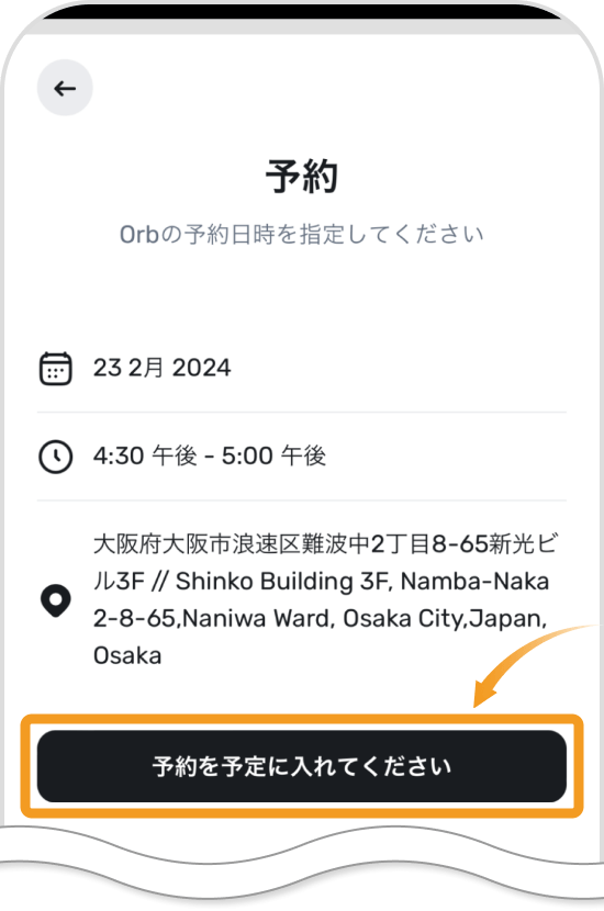 予約が完了したら、指定した日時にOrbが設置された会場に行きます。