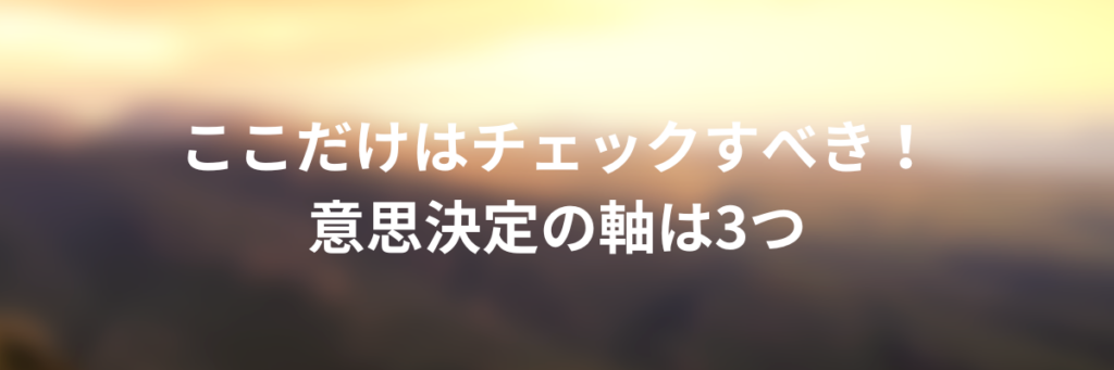 ここだけはチェックすべき!意思決定の軸は3つ