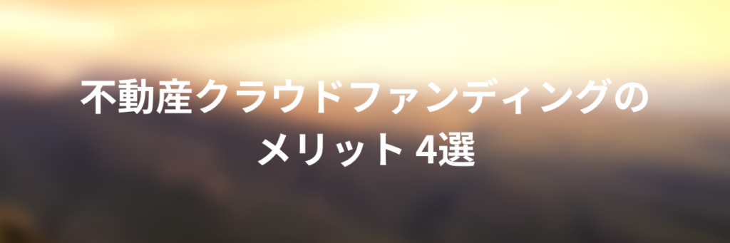 - 不動産クラウドファンディングのメリット 4選