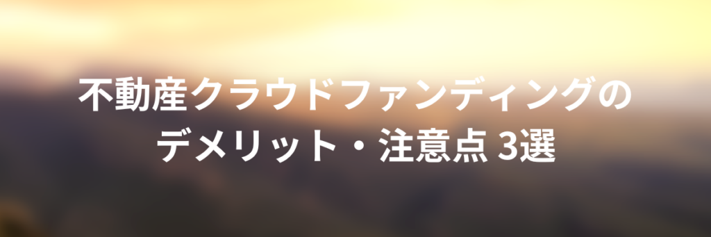 - 不動産クラウドファンディングのデメリット・注意点 3選
