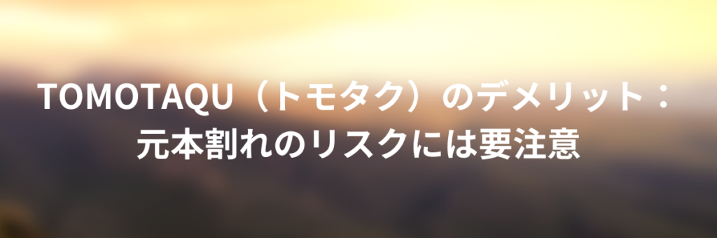 - トモタクで元本割れが起きたことは?