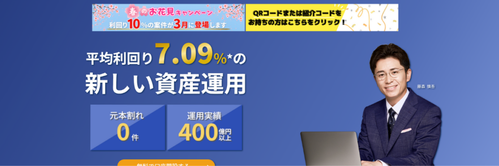 不動産を中心としたファンド に少額から投資でき、担保付きの案件も多く、リスクを抑えつつ高いリターンを狙えます。