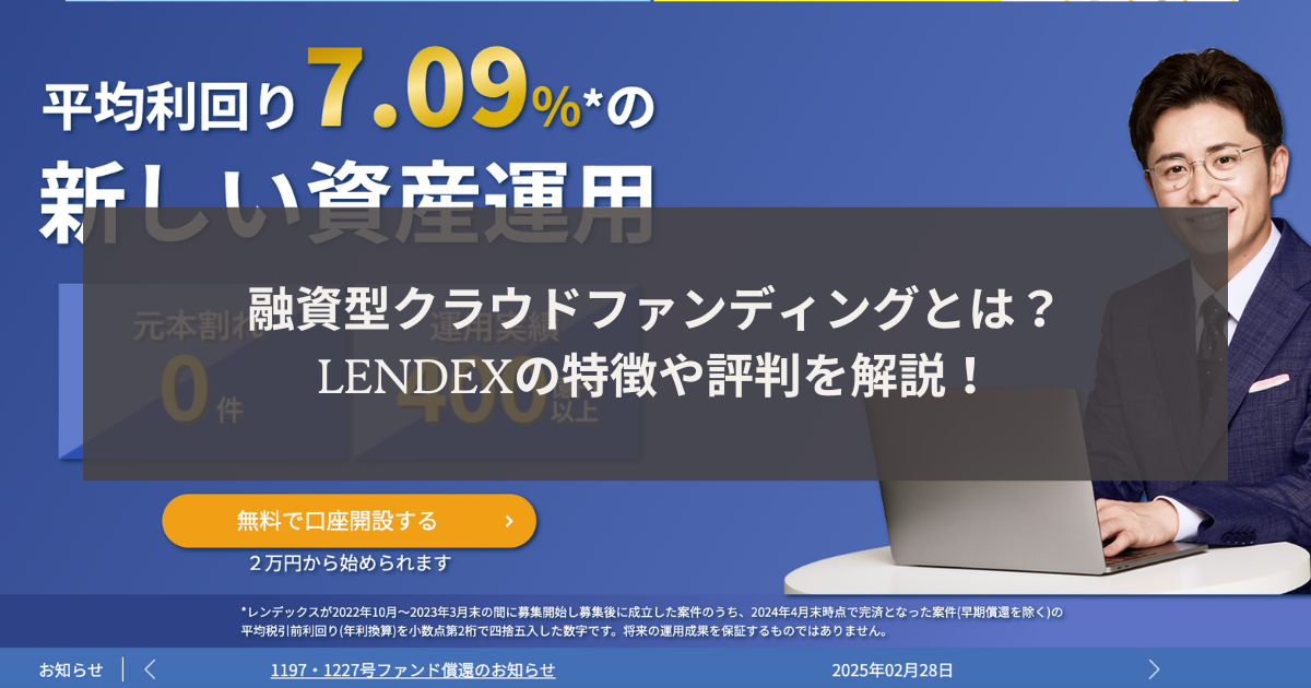 そこで本記事では、LENDEXの評判や口コミ、メリット・デメリットについて詳しく解説します。LENDEXに興味があるけれど、投資に不安を感じている方は、ぜひ参考にしてください。