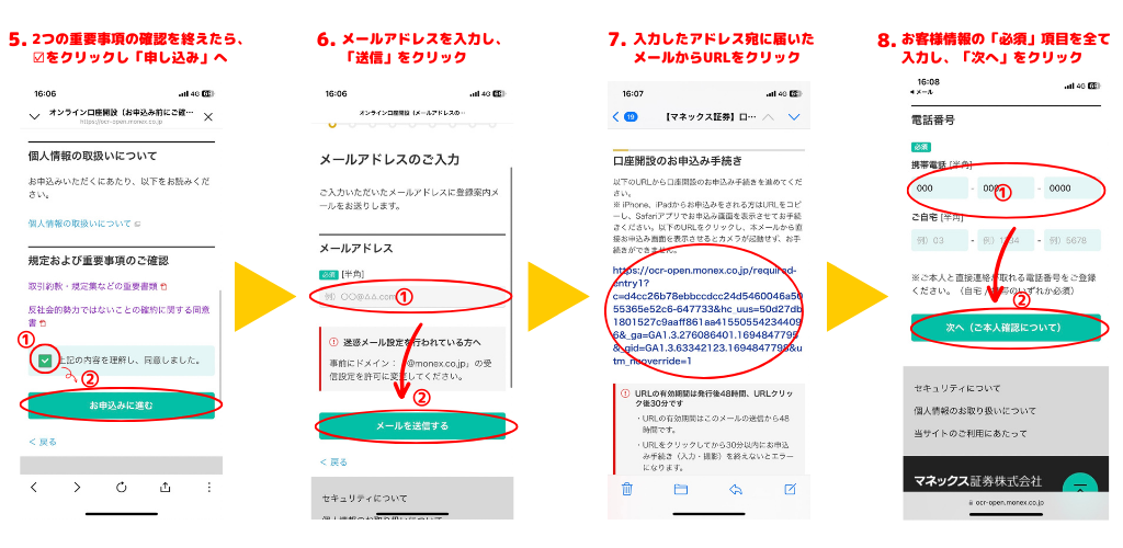 7. 入力したメールアドレス宛に、マネックス証券からメールが届くので、URLをクリック